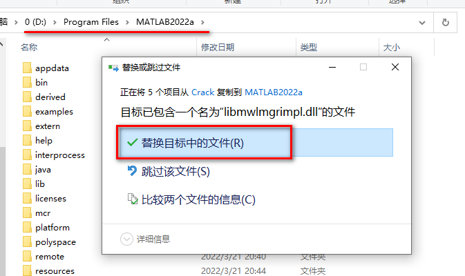 15.将bin文件夹粘贴到软件安装路径下(第10步设置的路径),点击“替换目标中的文件”